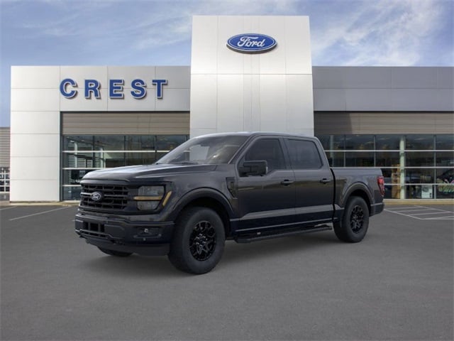 The 2025 Ford F-150 XLT features include a powerful 2.7L V6 EcoBoost engine, electronic ten-speed automatic transmission, and 4x4 drivetrain. It comes in Agate Black Metallic with a Black interior, and offers advanced features such as a blind spot sensor, emergency communication system, wireless phone connectivity, and fully automatic headlights. The vehicle also includes a variety of safety and convenience options like a rearview camera, SYNC 4 with enhanced voice recognition, and 12" productivity screen. Located near Rochester Hills